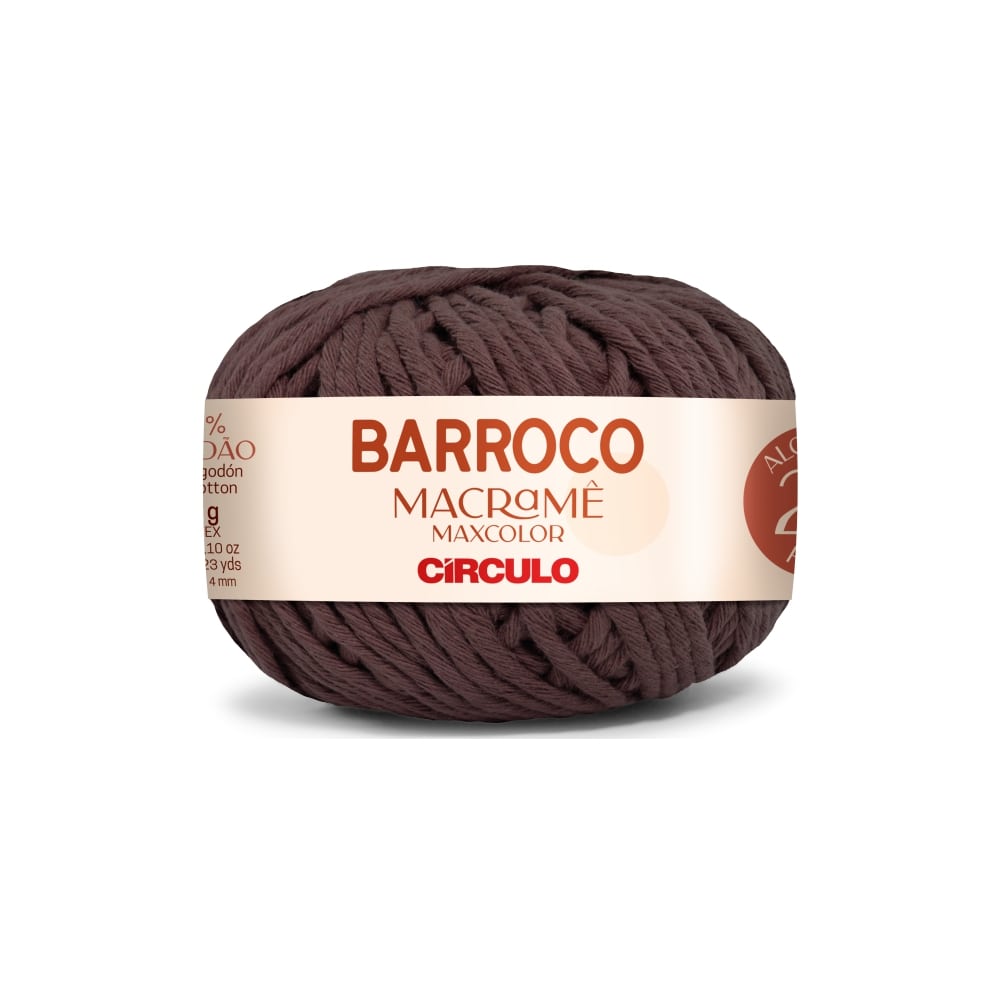 Possui 100% algodão e com alta espessura, esse fio é chamado de 4/24, pois cada fio possui quatro cabos e cada cabo é composto por mais outros 24 fios. Além de facilitar o manuseio durante o trabalho, a espessura de Barroco Macramê também garante o volume ideal para as peças feitas com a técnica.